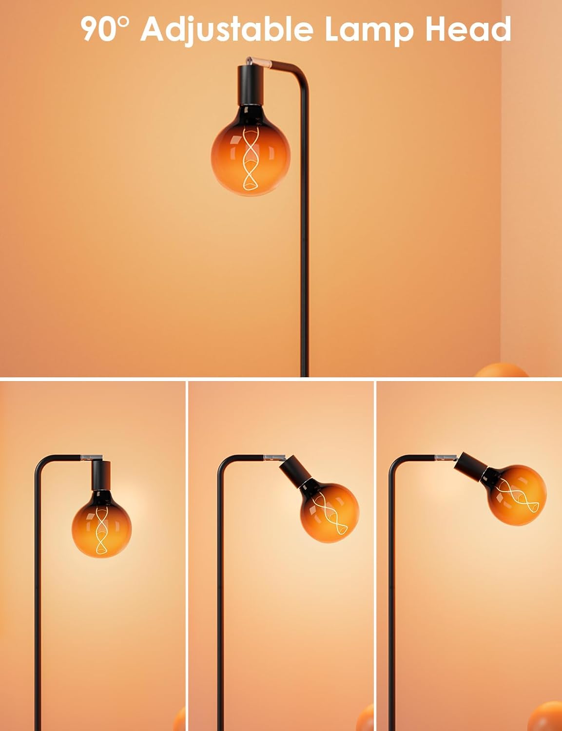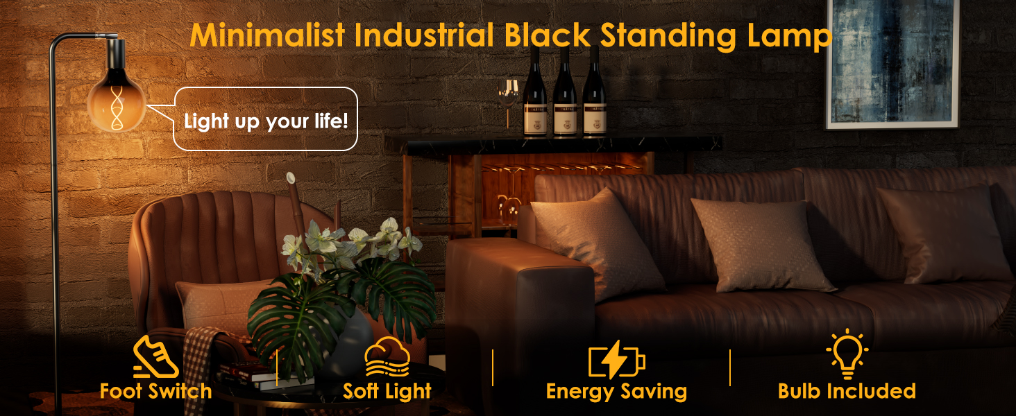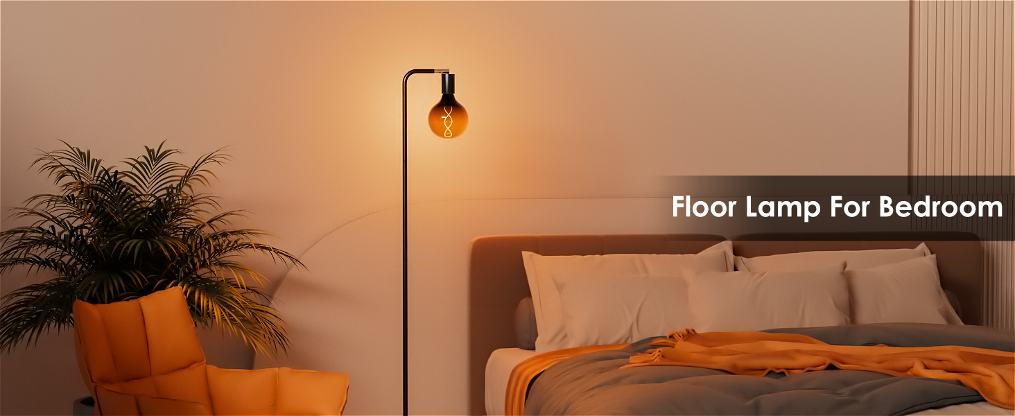 • Floor Lamps for Living Room, Floor Lamp with Globe Glass Light Bulb 69” Tall Standing Lamp, E26 Socket, 2200K Warm Ambient Lighting