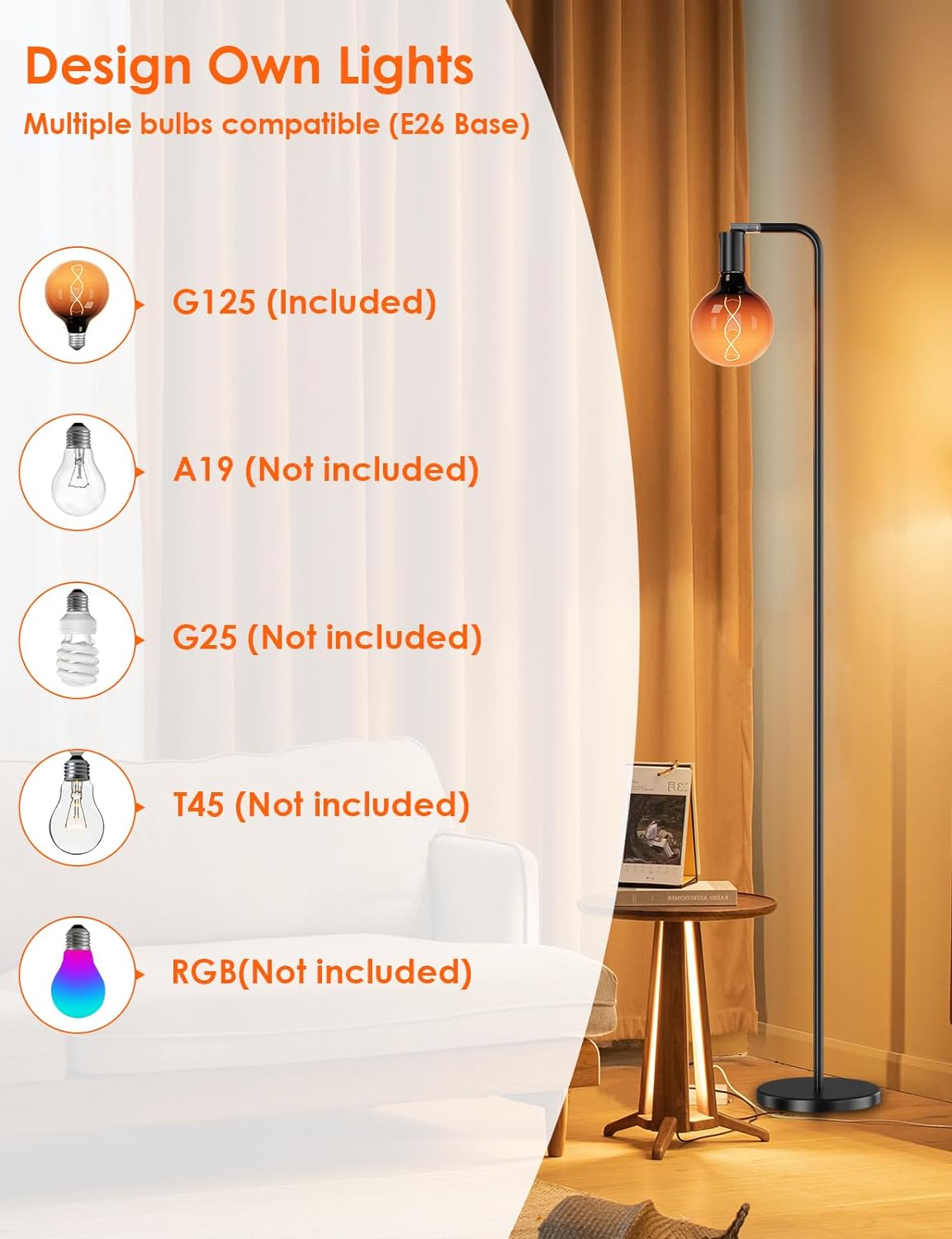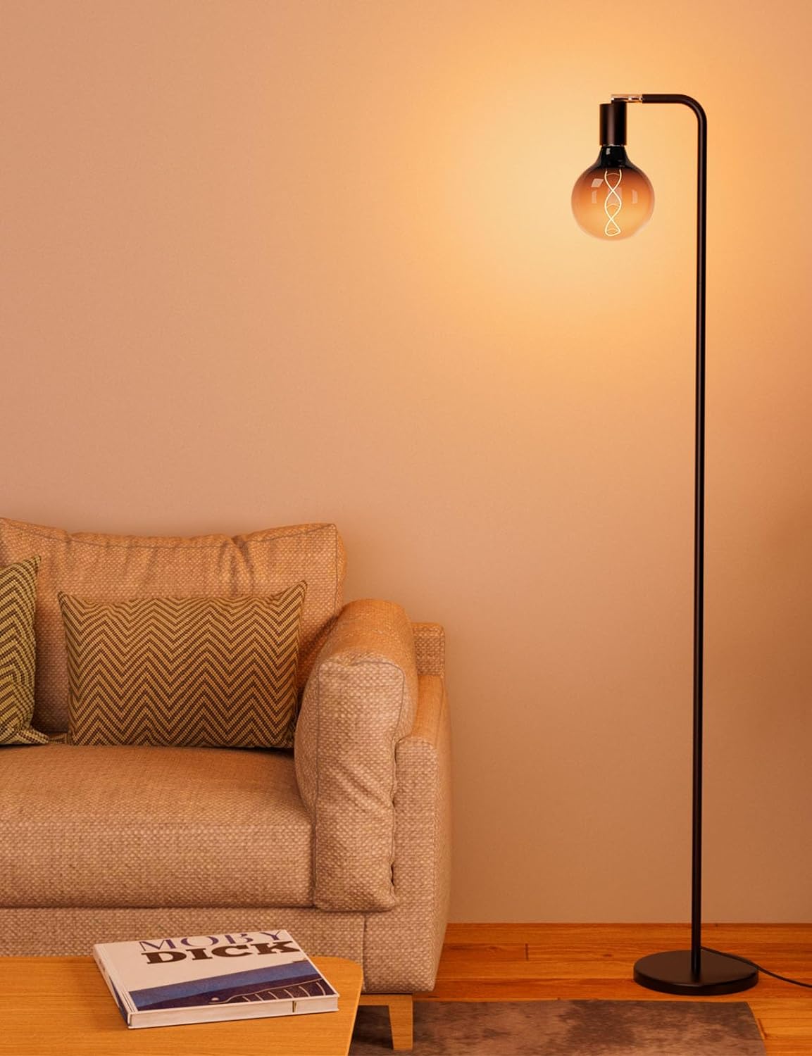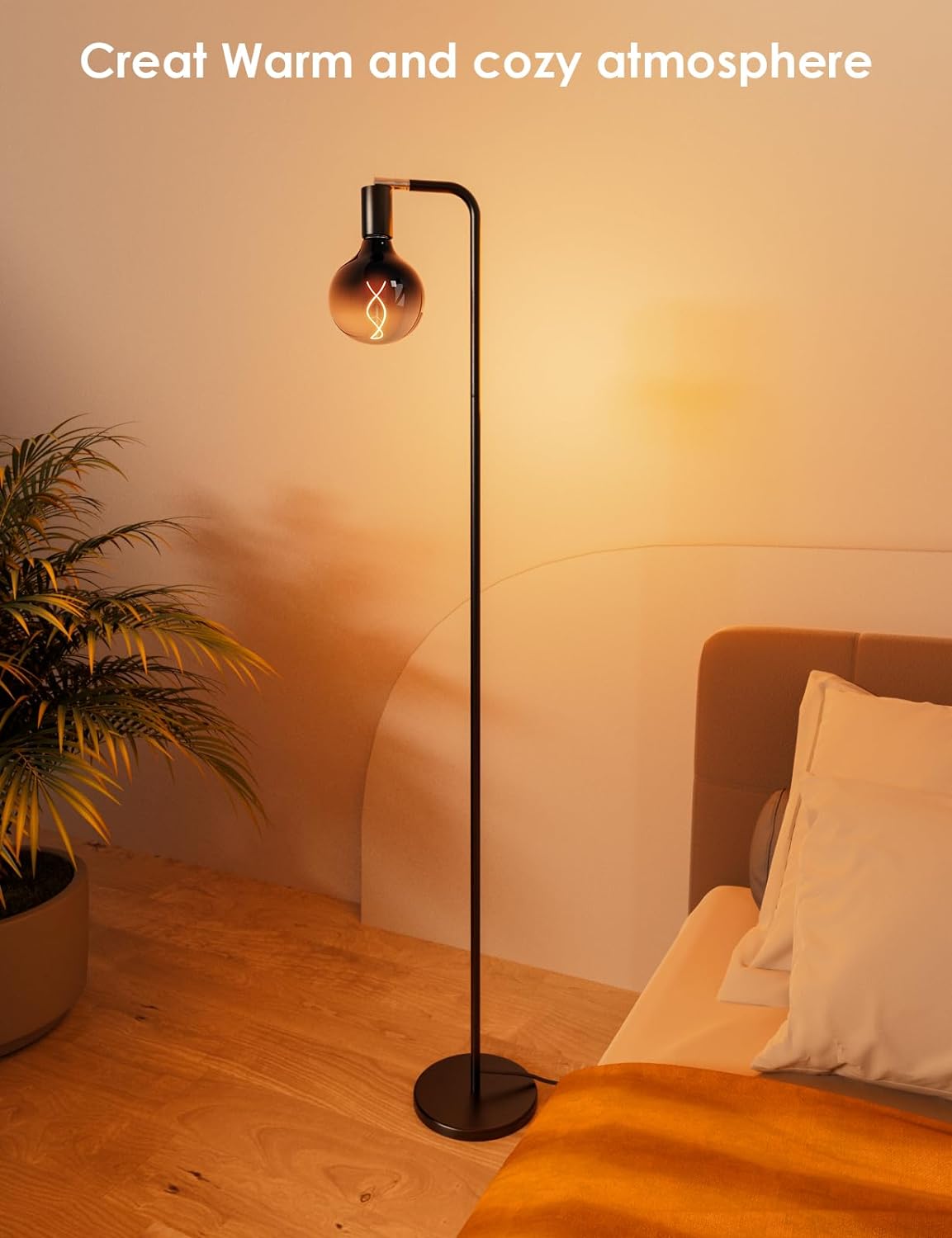 • Floor Lamps for Living Room, Floor Lamp with Globe Glass Light Bulb 69” Tall Standing Lamp, E26 Socket, 2200K Warm Ambient Lighting
